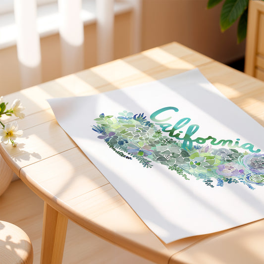 California Succulents Map | Fine Art Print | Travel Wall Decor