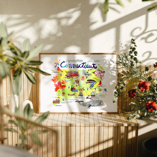 Connecticut Map | Fine Art Print | Travel Wall Decor
