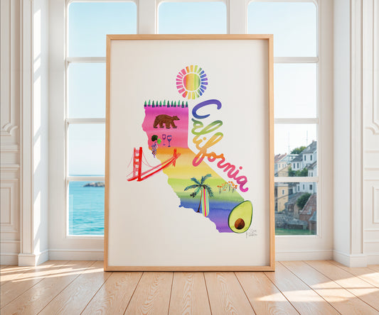 California Rainbow Map | Fine Art Print | Travel Wall Decor