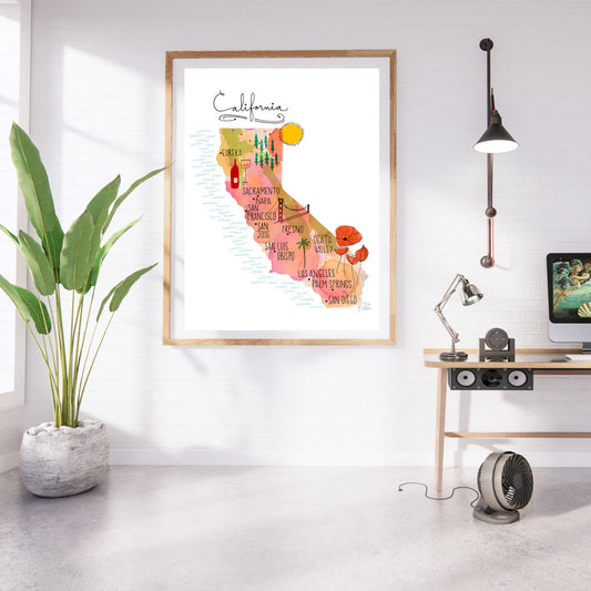 California Sunset Map | Fine Art Print | Travel Wall Decor