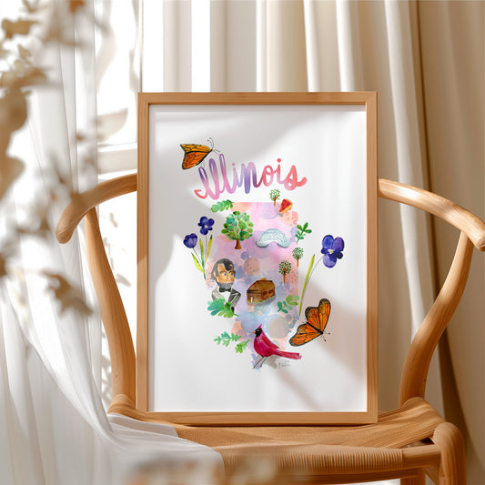 Illinois Map | Fine Art Print | Travel Wall Decor