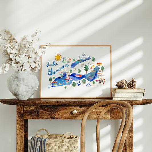 Lake Geneva Map | Fine Art Print | Travel Wall Decor