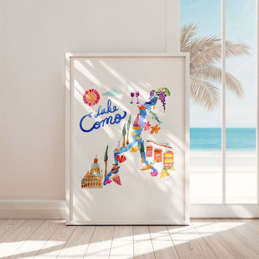 Lake Como Italy Map | Fine Art Print | Travel Wall Decor
