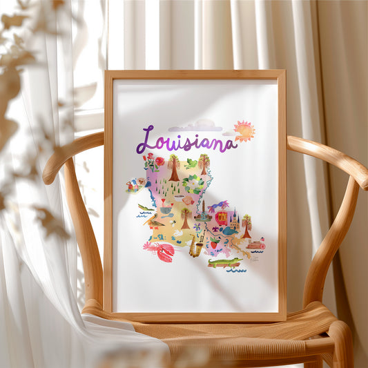 Louisiana Map | Fine Art Print | Travel Wall Decor