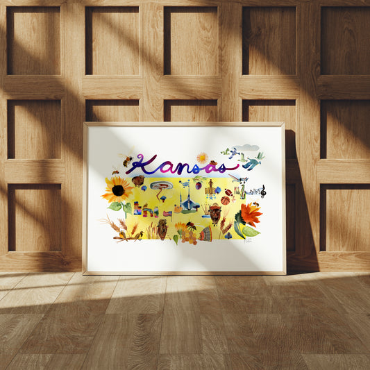 Kansas Map | Fine Art Print | Travel Wall Decor
