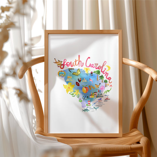 South Carolina Map | Fine Art Print | Travel Wall Decor