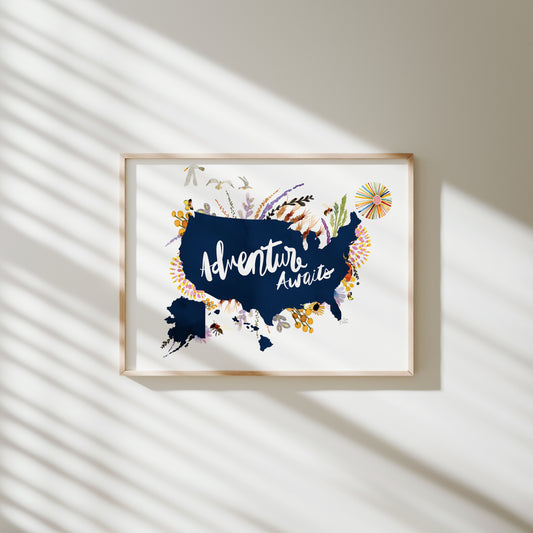 USA Adventure Awaits Map | Fine Art Print | Travel Wall Decor