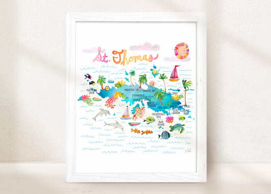 St Thomas Map | Fine Art Print | Travel Wall Decor