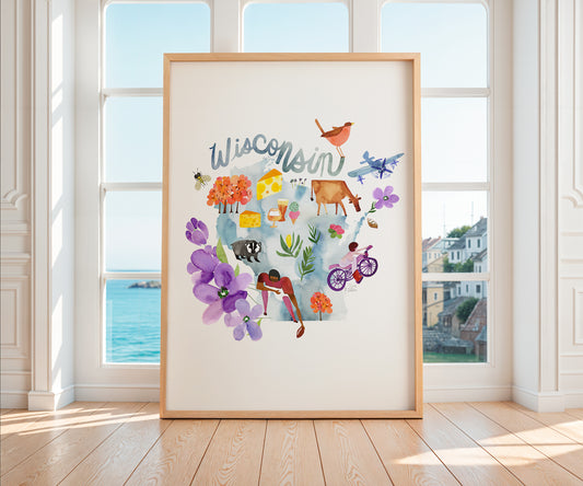 Wisconsin Map | Fine Art Print | Travel Wall Decor