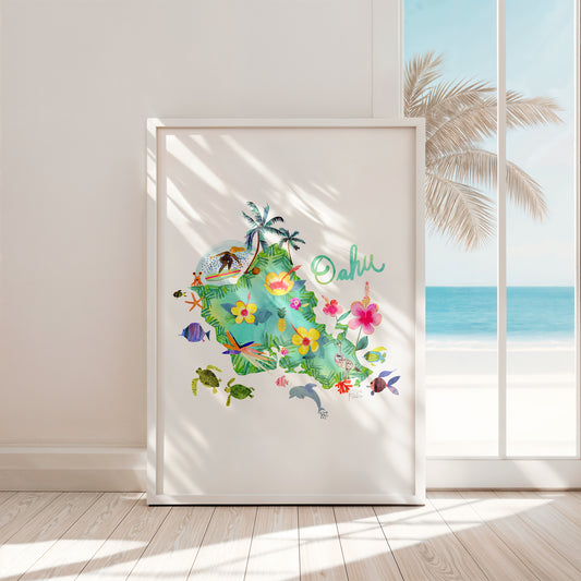 Oahu Map | Fine Art Print | Travel Wall Decor