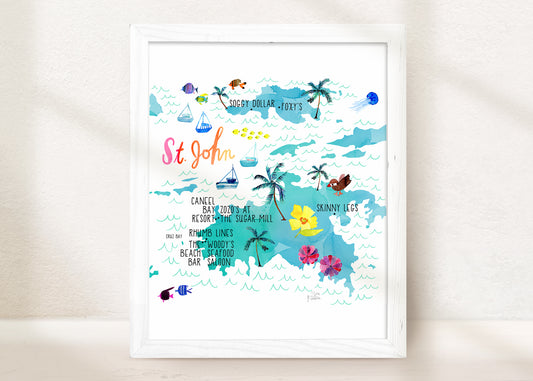 St John USVI Map | Fine Art Print | Travel Wall Decor